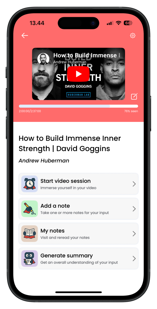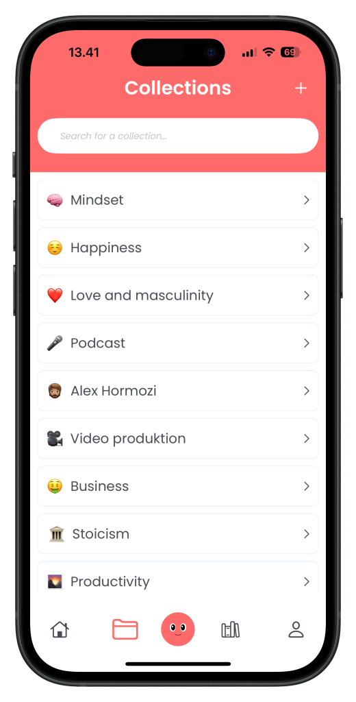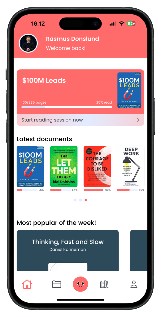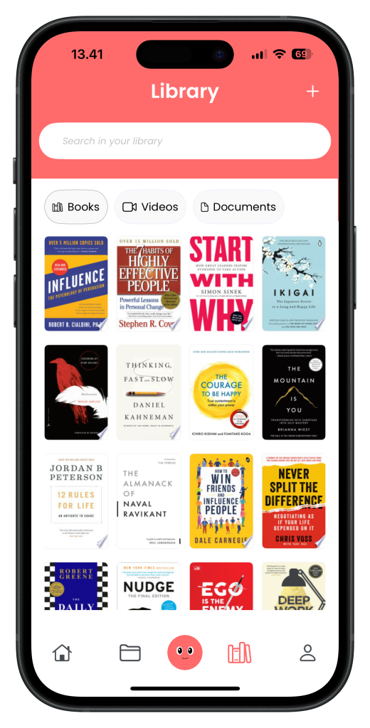 Du kan samle bøger, podcasts, videoer og dokumenter et sted, tage noter direkte på dem og bruge chatten til at reflektere, få overblik og træffe beslutninger baseret på alt du har lært.
